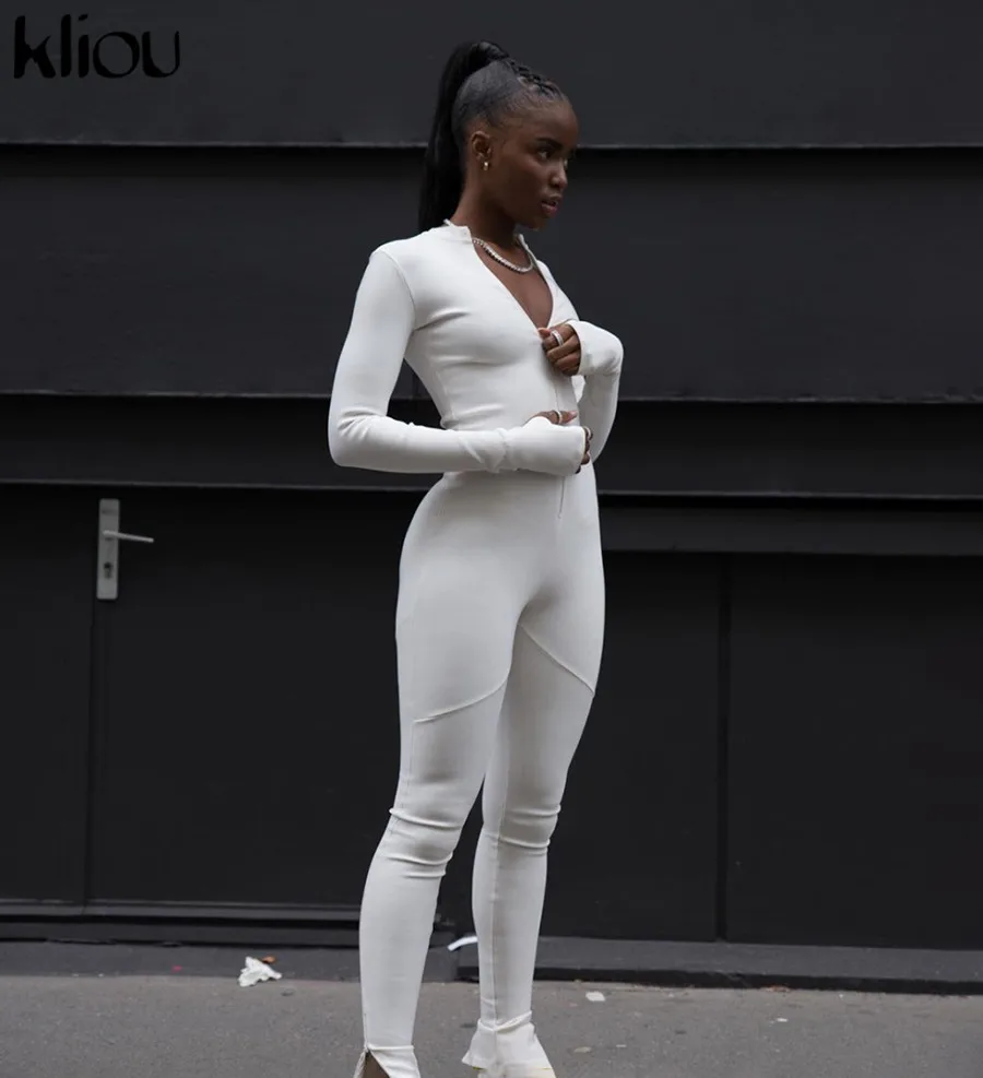 ✅ Kliou черный/белый сексуальный облегающий спортивный комбинезон для женщин 2020 новый фитнес-комбинезон с длинным рукавом на молнии эластичное боди