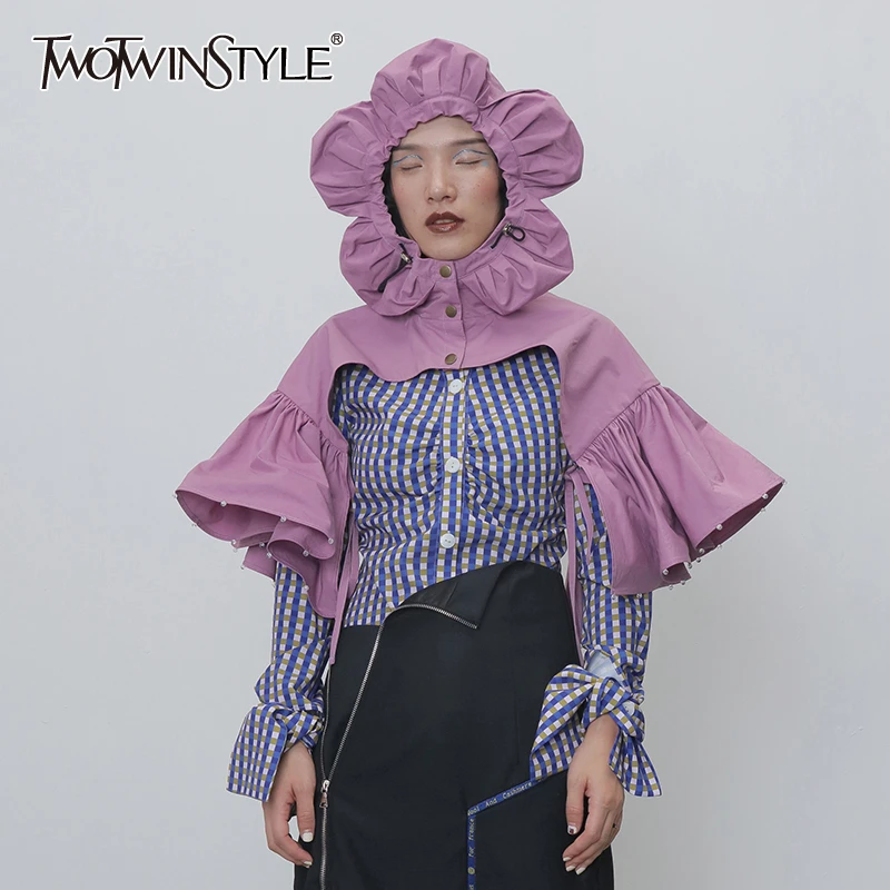 ✅ Женская Лоскутная Пашмина TWOTWINSTYLE, с бусинами, рюшами, воротником с капюшоном и коротким рукавом, на шнуровке