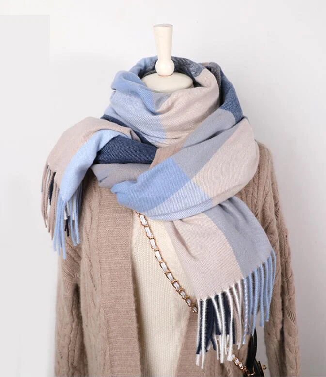 ✅ Зимний шарф для женщин 2020, шали, модные клетчатые теплые толстые кашемировые шарфы, качественная женская бандана из пашмины с кисточками