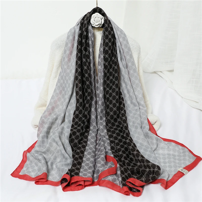 ✅ Дизайнерский брендовый женский шарф, Модный хлопковый принт, весна-зима, теплая повязка на голову hijabs, женские пляжные палантины из пашмины,...