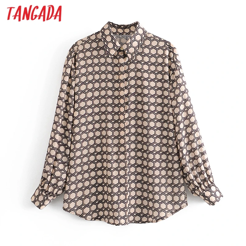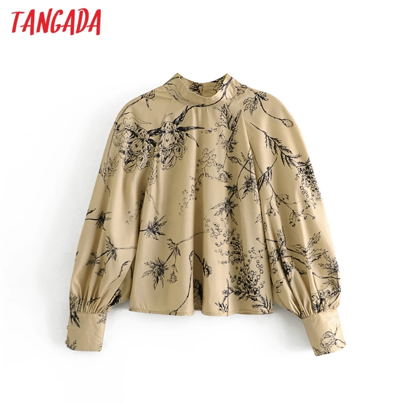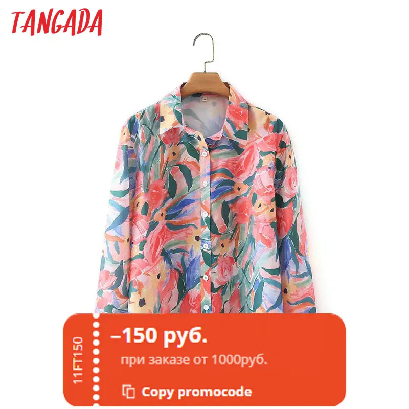 ✅ Tangada Для женщин в стиле ретро с цветочным принтом Свободная шифоновая рубашка блуза с длинным рукавом Корейская Повседневная Женская топы 2J3
