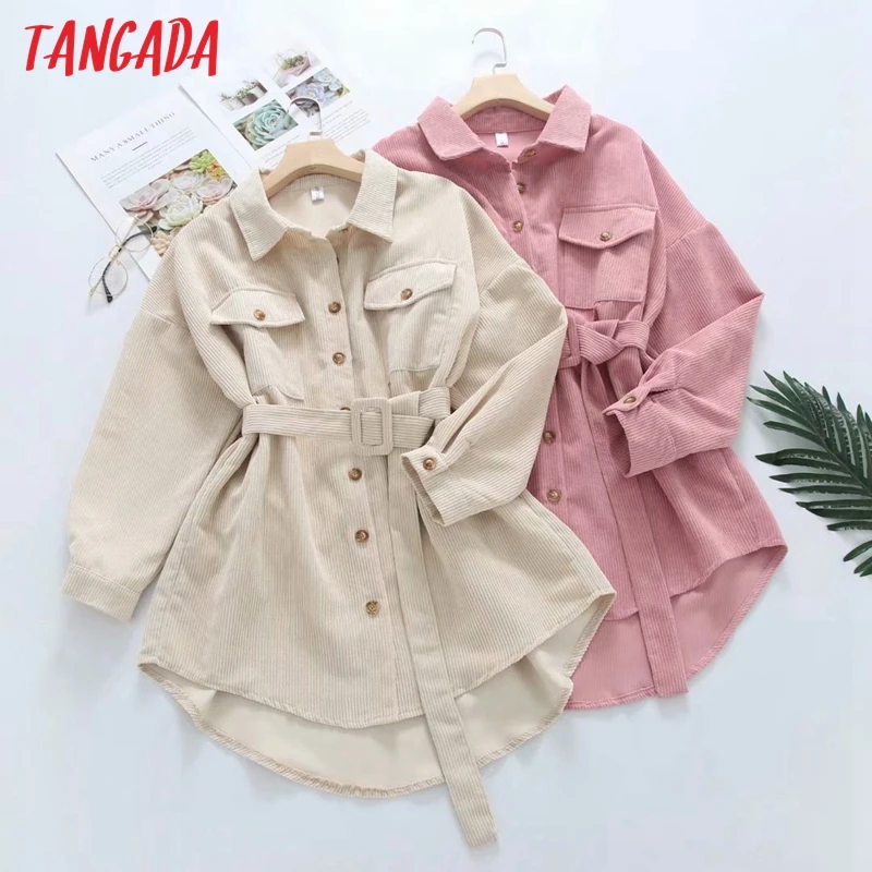 ✅ Tangada 2021 Для женщин свободный Вельветовая рубашка с прорезью с длинным рукавом Корейская Повседневная Женская Повседневное Топы Blusas HX05
