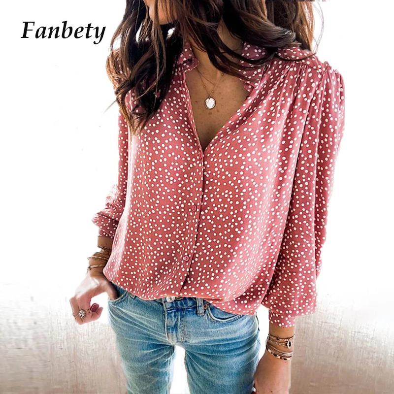 ✅ Рубашка Vonda женская с длинным рукавом, модная Повседневная блуза в горошек, с отложным воротником, на пуговицах