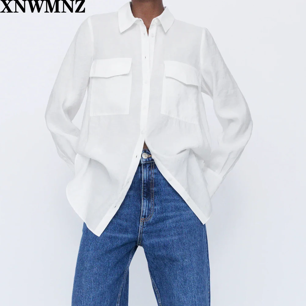 ✅ XNWMNZ Za Женская 2020 длинная рубашка с карманами, Женская Повседневная Длинная рубашка с воротником с манжетами и длинными рукавами на пуговица...