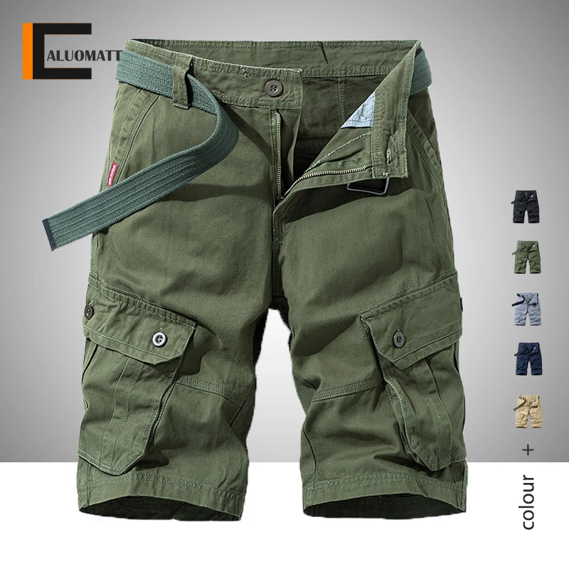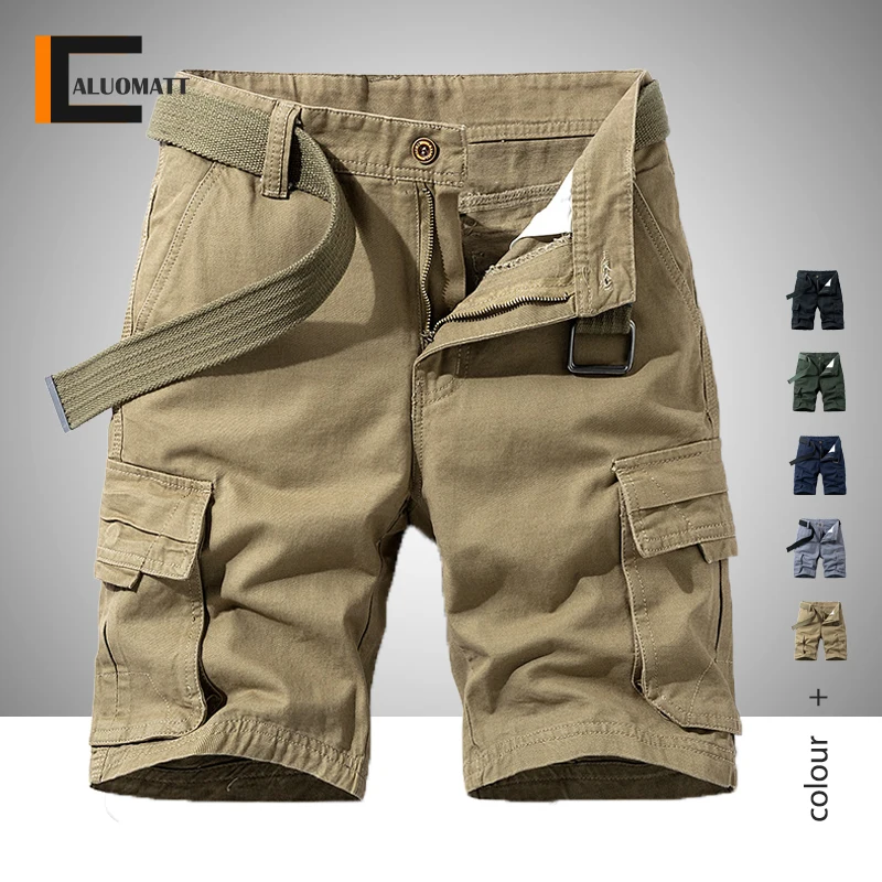 ✅ 2021 летние Для мужчин багги с карманами в стиле милитари мужские шорты Карго из хлопка цвета хаки, Для мужчин s тактические шорты короткие штаны; Размер 29-44 без ремня
