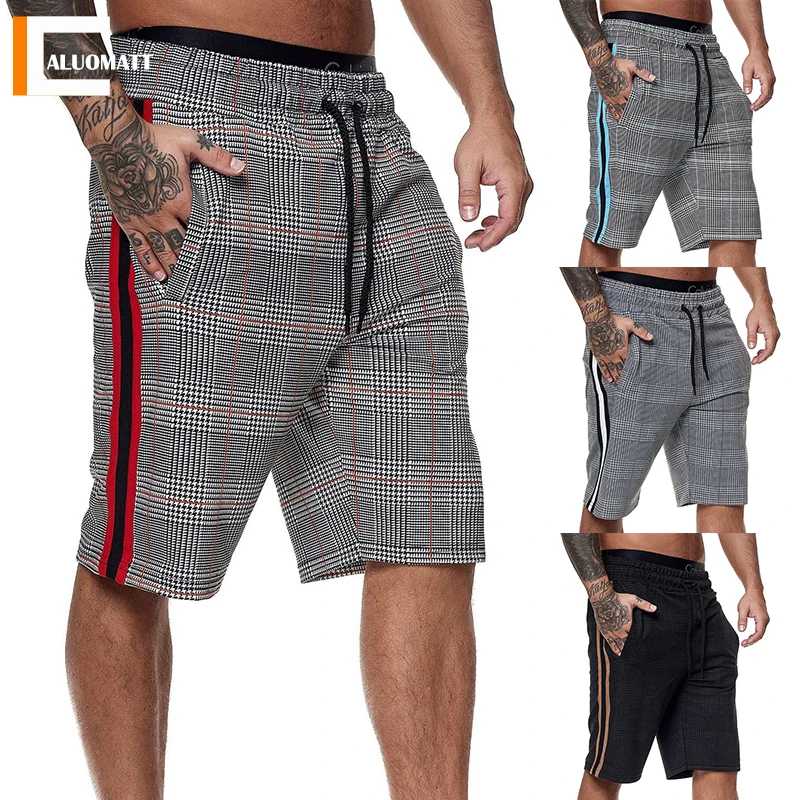 ✅ Модные мужские шорты 2020 летние мужские клетчатые шорты с эластичной резинкой на талии шорты для фитнеса мужские повседневные полосатые шор...