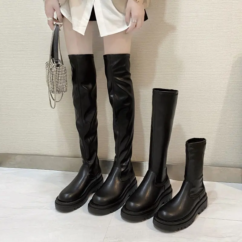 ✅ Женские ботфорты на плоской подошве, черные сапоги до бедра на платформе, зимняя обувь, длинные сапоги, женская обувь на толстой подошве, 2020