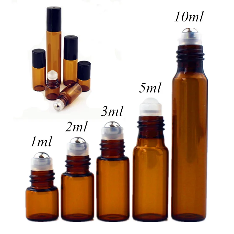 ✅ 50 шт./лот 1 мл 2 мл 3 мл 5 мл 10 мл Прозрачный/Янтарный стеклянный рулон на бутылке со стеклянным/металлическим шариком Тонкий Стеклянный ролик э...