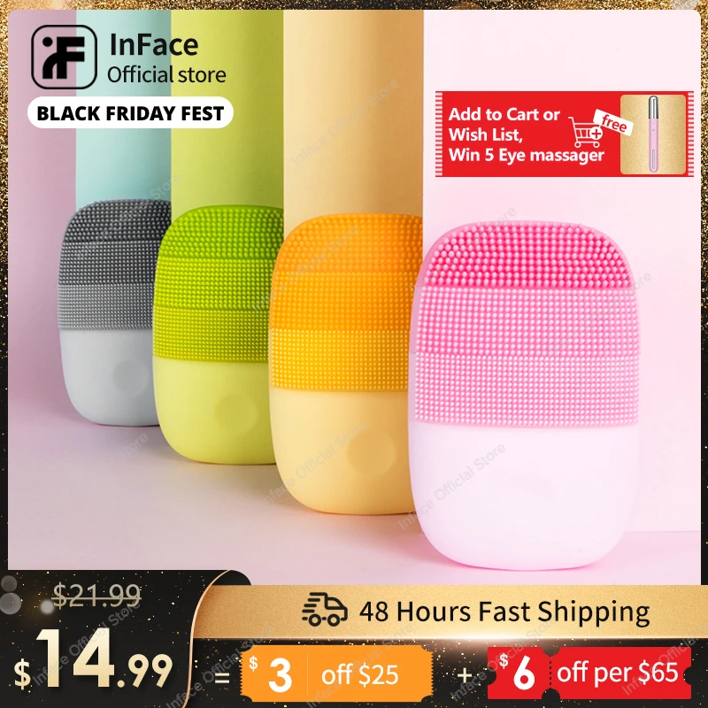 ✅ InFace щетка для очищения лица Инструменты для ухода за кожей лица водонепроницаемый силиконовый Электрический звуковой Массажер для очищени...