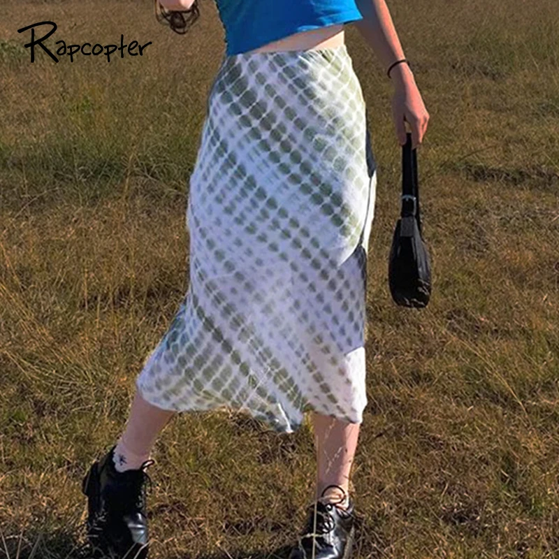 ✅ Юбка Rapcopter Y2K с принтом, длинная прямая юбка до середины икры с оборками и завышенной талией, милый наряд для вечерние, уличная одежда