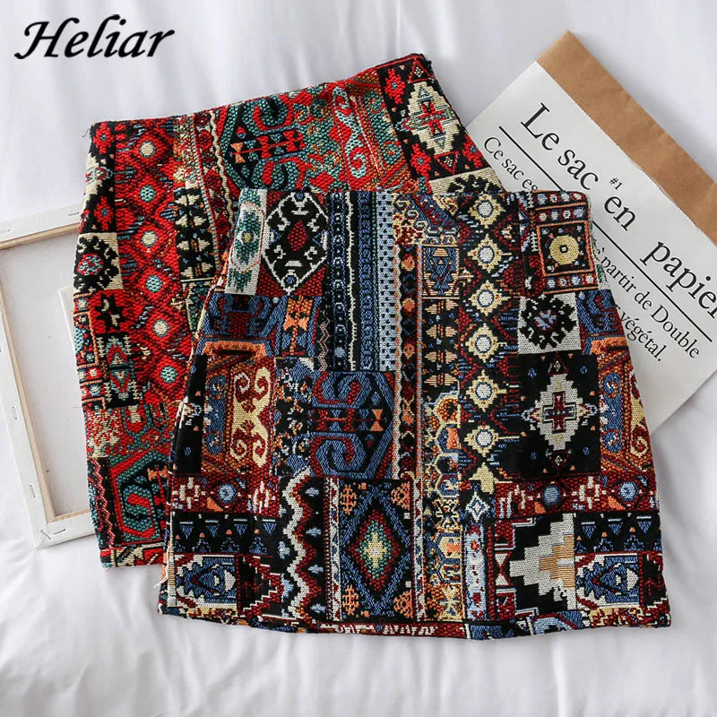 ✅ Женская богемная мини-юбка HELIAR, винтажная юбка трапециевидной формы с вышивкой и геометрическим узором