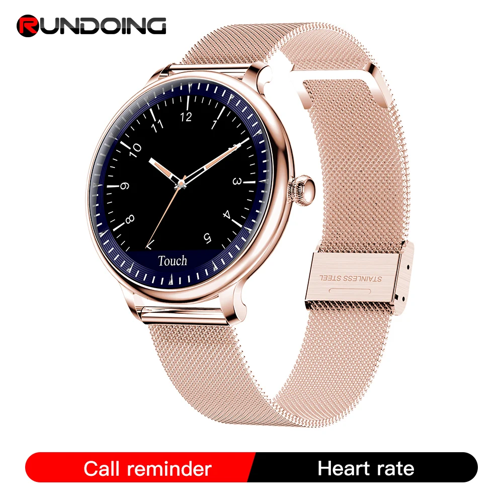 ✅ RUNDOING NY12 Стильные женские умные часы SmartWatch с круглым экраном для девочек Монитор сердечного ритма, совместимый для Android и IOS