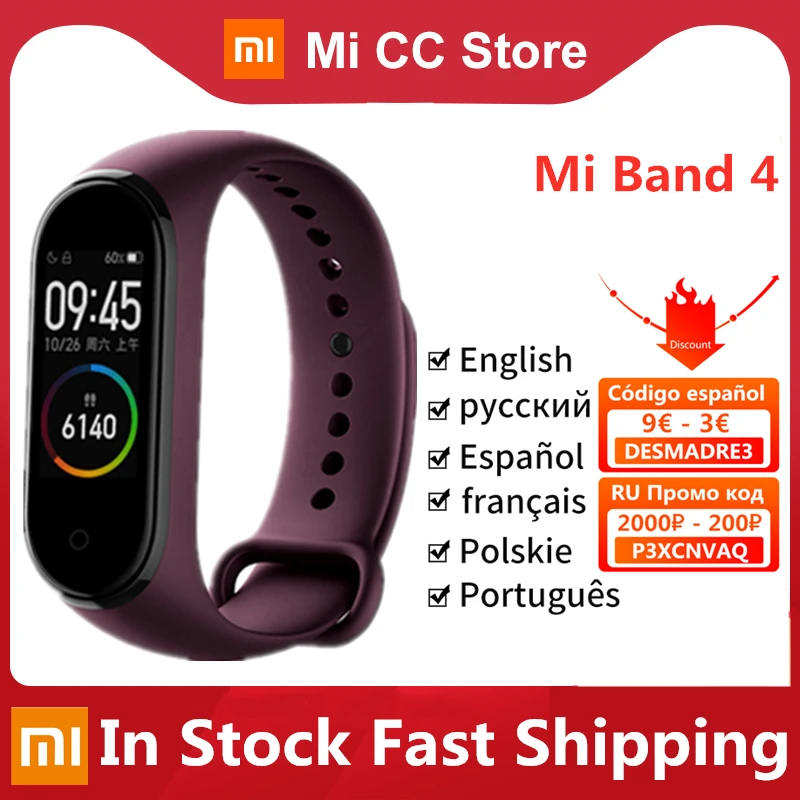 ✅ В наличии умный Браслет Xiaomi Mi Band 4 активно-матричные осид экран монитор сердечного ритма фитнес-трекер Mi 4 Bluetooth5.0 водонепроницаемый 5 цветов ...