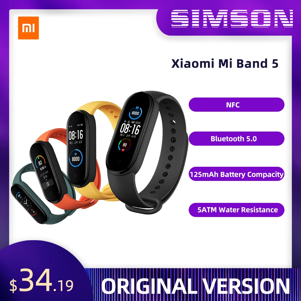 ✅ Фитнес-трекер Xiaomi Mi Band 5 NFC Bluetooth 5,0 водонепроницаемый Miband5 смарт-браслет 4 AMOLED экран пульсометр Mi Band