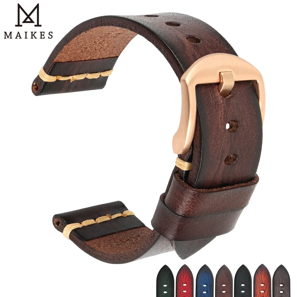 ✅ Ремешок Maikes из натуральной кожи для Galaxy Watch, браслет для часов Tissote Timex Omega, 18 мм 20 мм 22 мм 24 мм