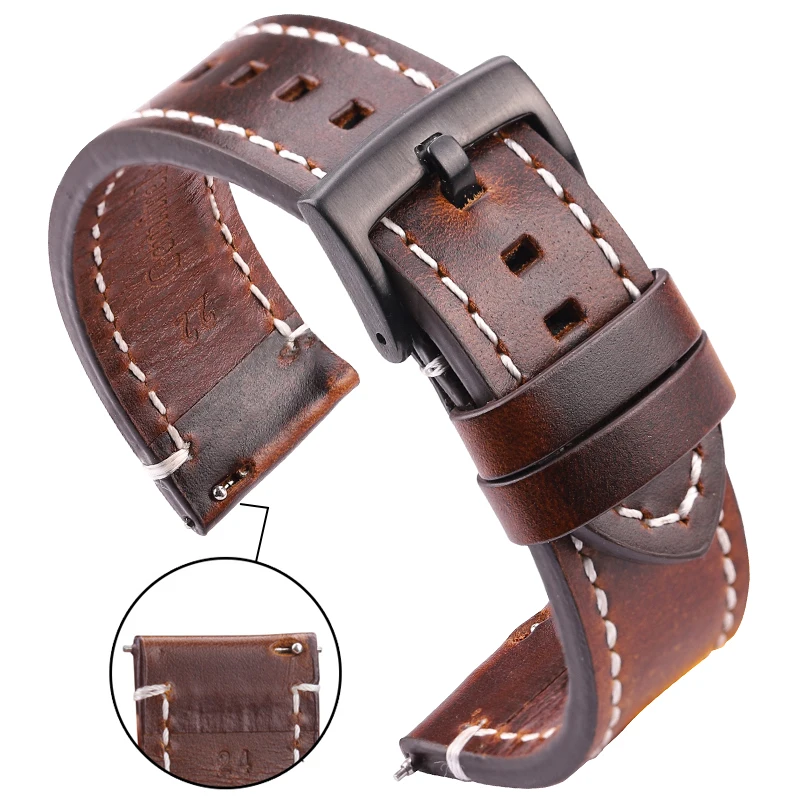 ✅ Ремешок для часов, из натуральной коровьей кожи черного/темно-коричневого цвета с застежкой, 18/20/22/24 мм