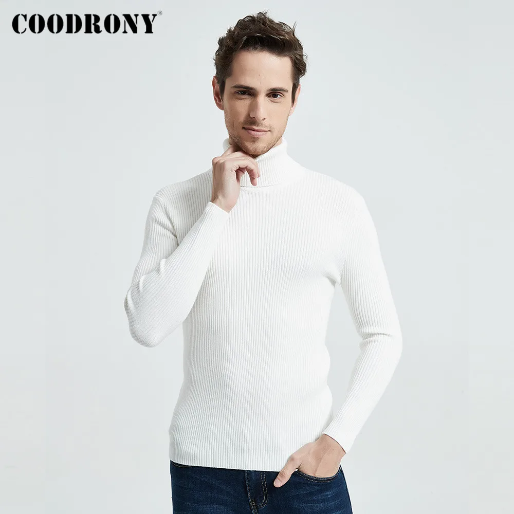 ✅ COODRONY Рождественский свитер Мужская одежда Зимний толстый теплый повседневный трикотажный пуловер с высоким воротом классический чисты...