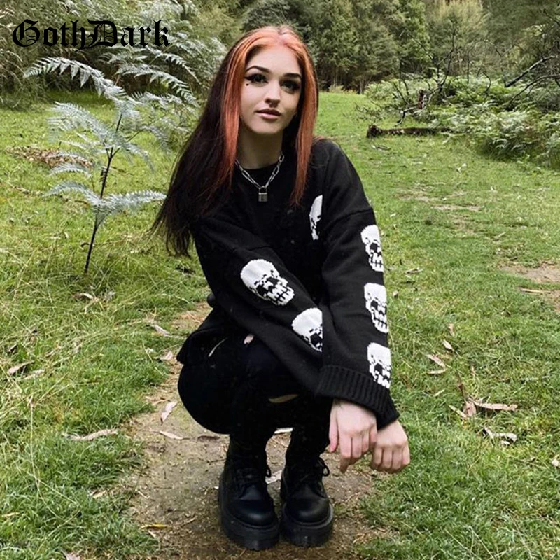 ✅ Женский свитер с круглым вырезом Goth Dark, черный свободный пуловер с длинными рукавами в стиле панк, Осень-зима 2020