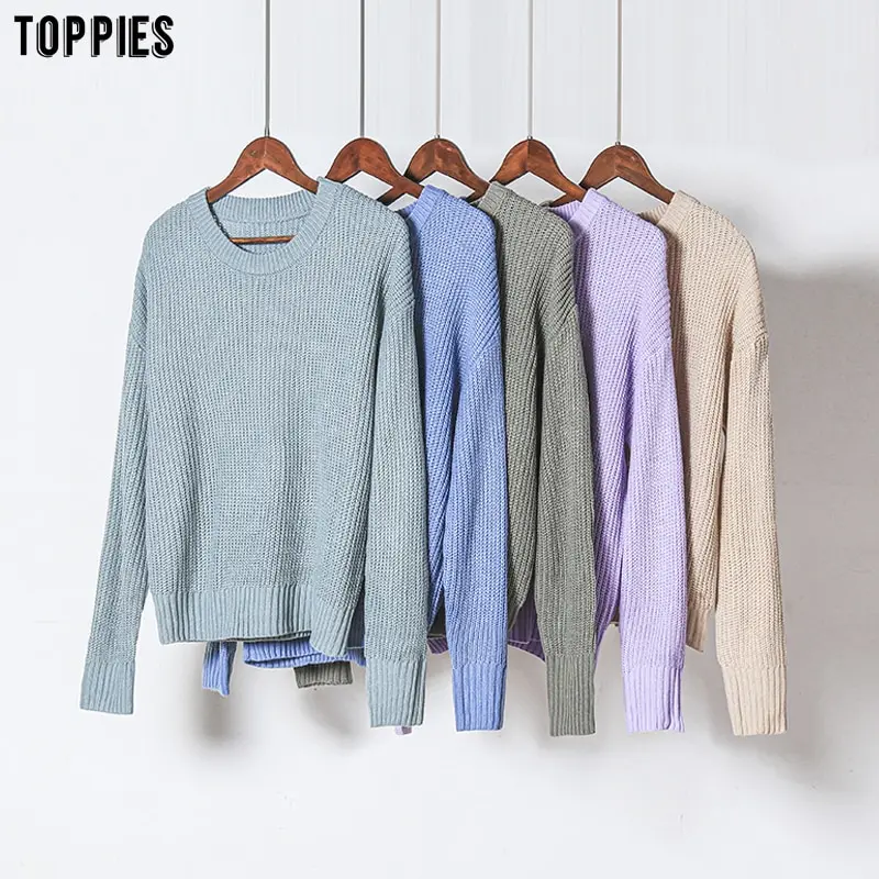 ✅ Toppies 2020 осенне-зимний женский вязаный свитер с круглым вырезом пуловеры с длинным рукавом Джерси винтажная одежда