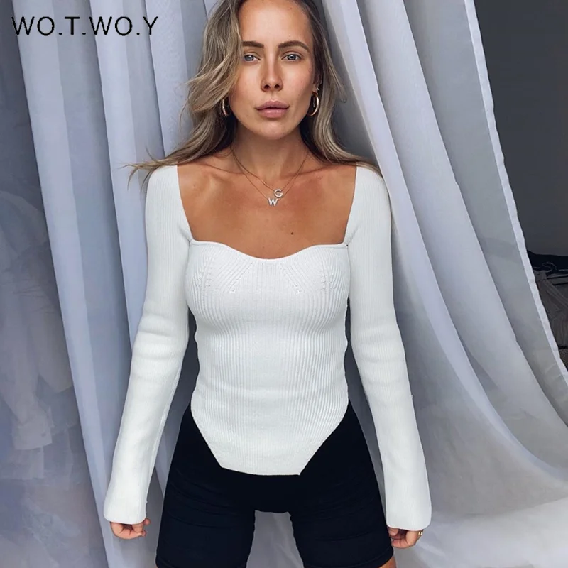 ✅ Женский Укороченный джемпер WOTWOY, укороченный облегающий вязаный пуловер с v-образным вырезом, модель 2020