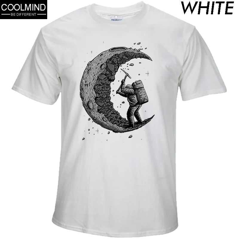 ✅ 100% хлопок, принт с Луной, забавные мужские футболки с круглым вырезом, модные мужские топы, Мужская футболка классная мужская футболка, мужс...