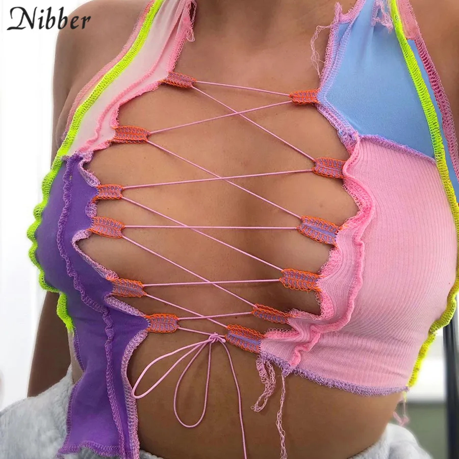 ✅ Nibber пикантные выдалбливать камзол для женщин в стиле панк ребристые вязаные кроп-топы Клубная праздничная одежда цветная майка Топ жилет женский