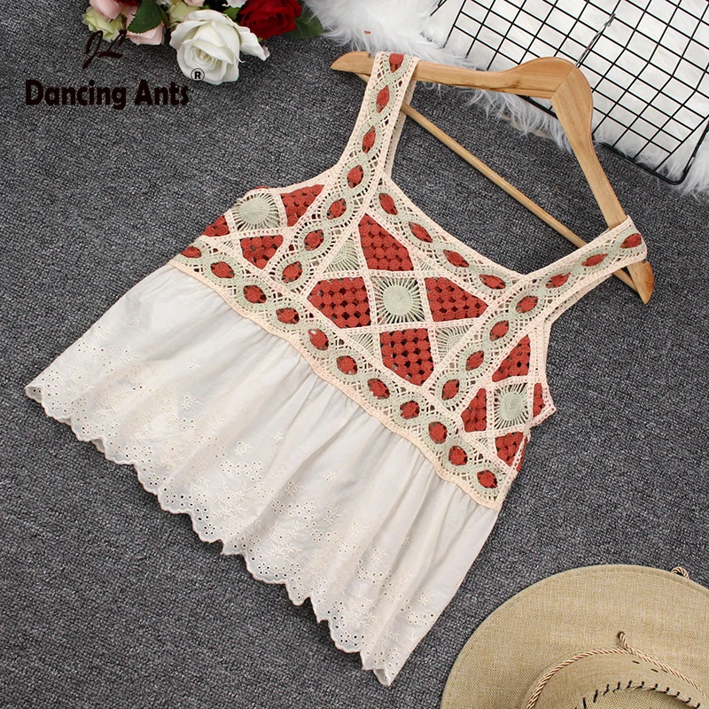 ✅ Женский топ на бретелях, женский кружевной жилет без рукавов, французский шик, Модный цветочный принт, Повседневная Лоскутная футболка