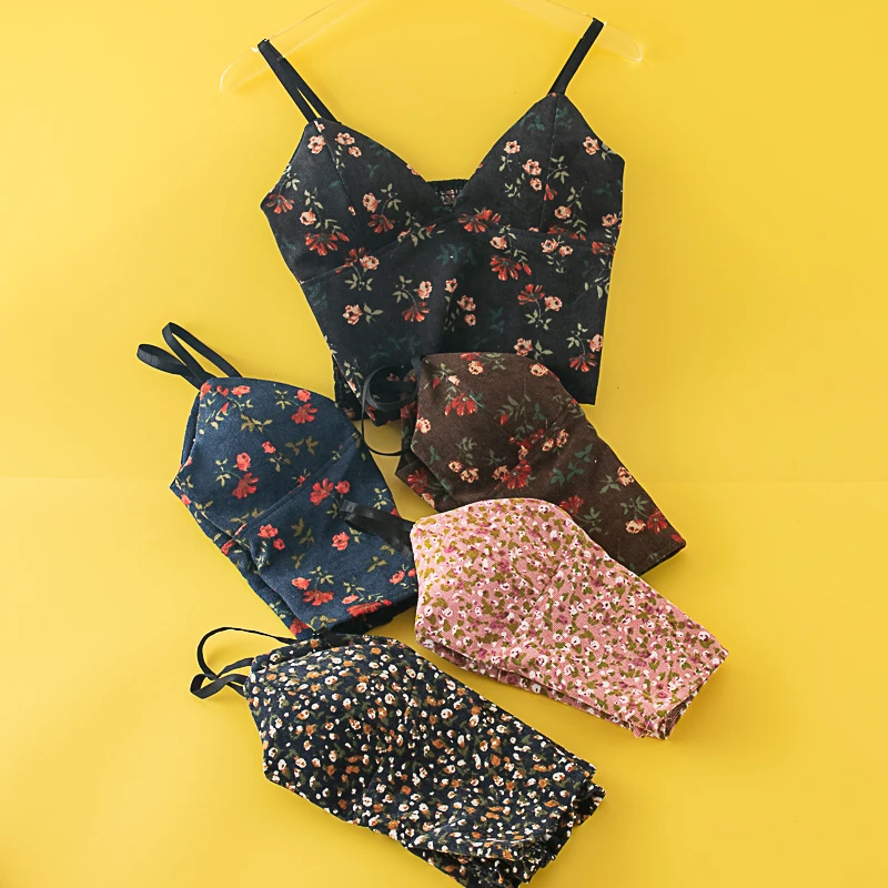 ✅ Майка женская однотонная с V-образным вырезом, топ на бретелях-спагетти, облегающая с разбитыми цветами, винтажная одежда в Корейском стиле