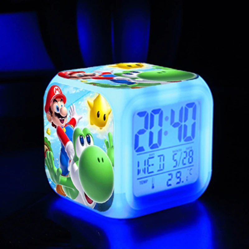 ✅ Аниме Супер Братья Марио Фигурки игрушки Красочные флэш цифровой будильник светодиодный светильник настольные украшения для детских игру...