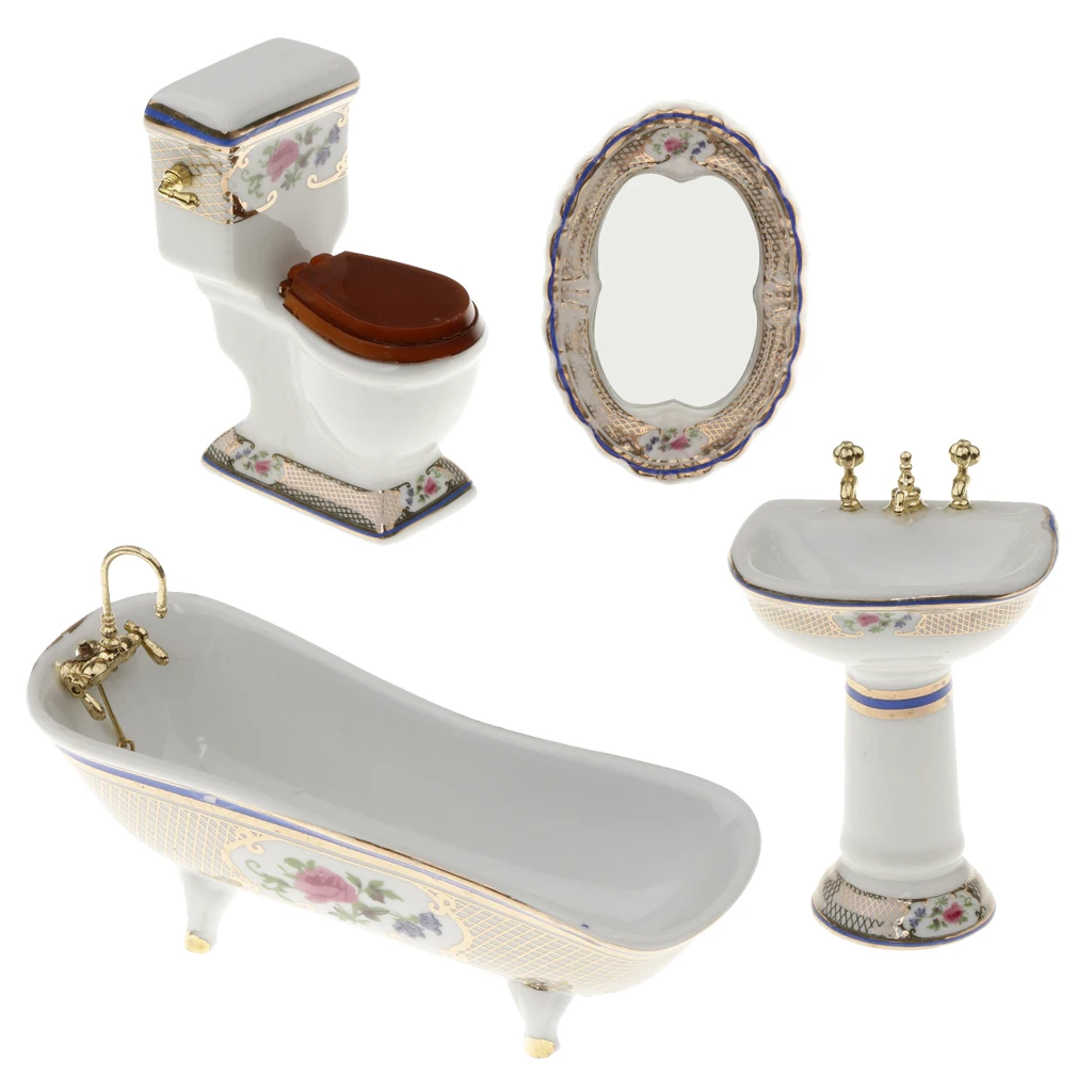✅ Кукольный домик для ванной, миниатюрный набор для ванной комнаты с цветочным принтом #3, 1/12
