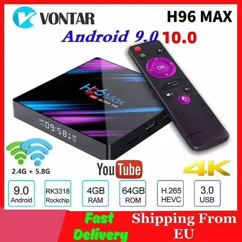 ✅ ТВ-приставка Vontar H96 MAX Android 9,0 4 Гб ОЗУ 64 Гб ПЗУ RK3318 1080p 60fps H96Max 4K WiFi медиаплеер Youtube телеприставка 1G8G