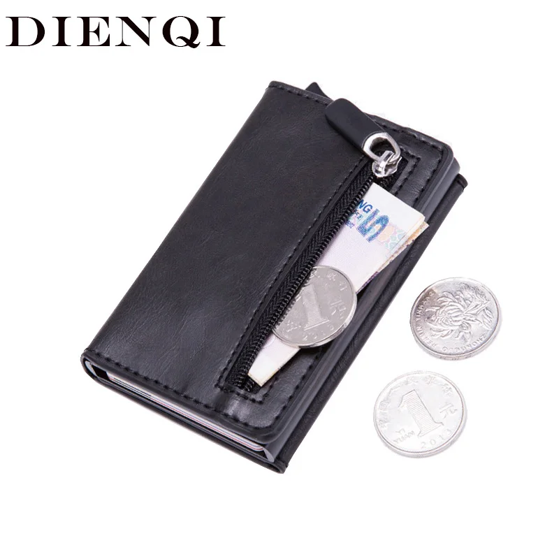 ✅ DIENQI Анти Rfid id держатель для карт чехол для мужчин кожаный металлический кошелек мужской кошелек для монет женский мини карбоновый держатель для кредитных карт на молнии