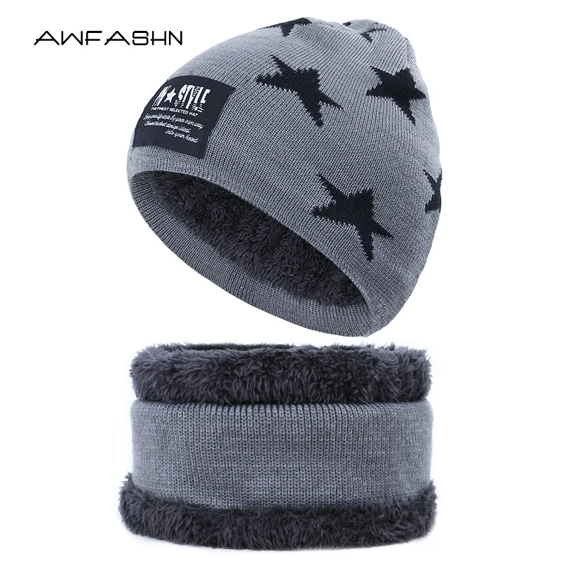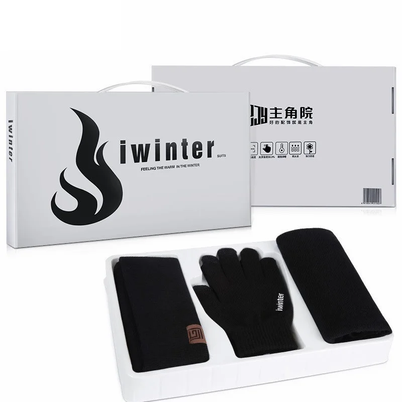 ✅ Мужские зимние шапки, шарфы, перчатки, набор, модный вязаный плюс бархатная шапка, шарф, набор, Мужской 3 шт./компл., шапочки, шарф-перчатка