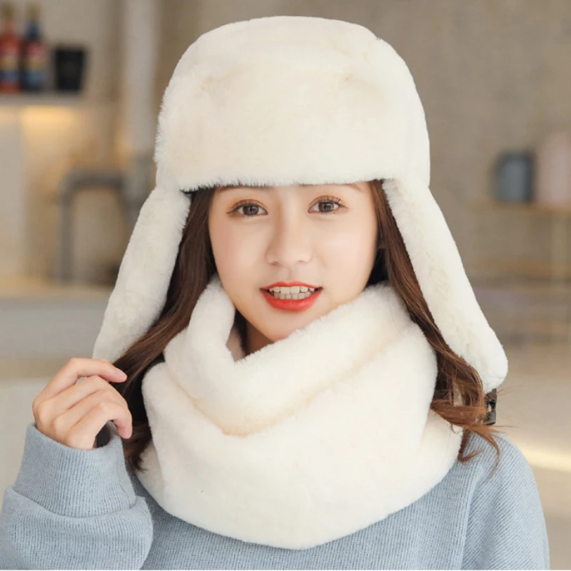 ✅ Комплект из шапки и шарфа HT2763, зимние аксессуары, Толстая Теплая Лыжная русская шапка и шарф, мягкая смываемая меховая шапка-ушанка, Русская ...