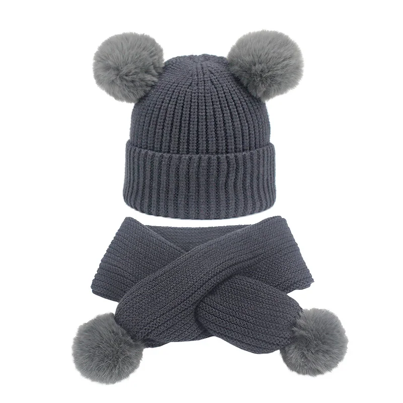 ✅ Милый детский комплект из шапки и шарфа с помпоном, утепленная детская шапка, шарф, костюм, шапка, шарф для мальчиков и девочек, Хлопковые вяз...
