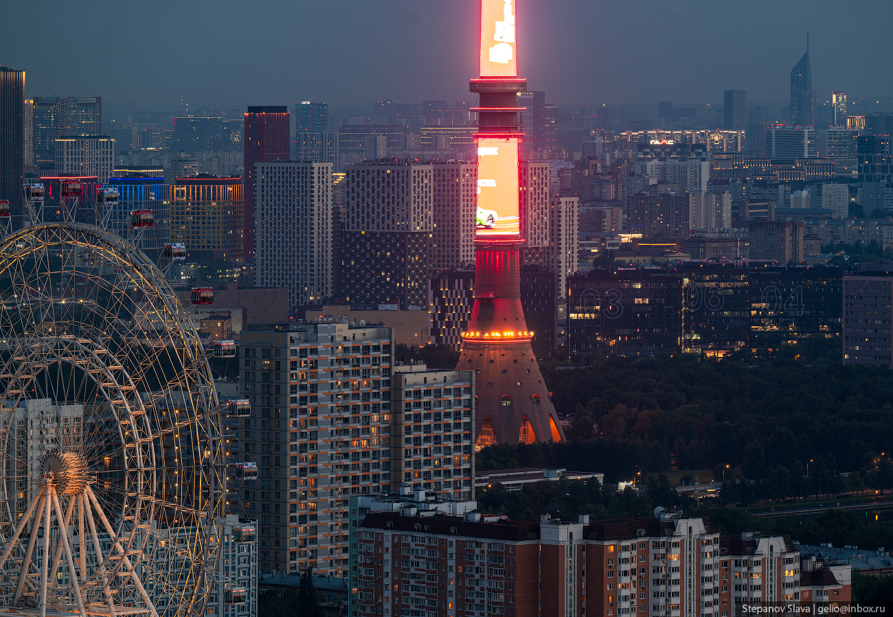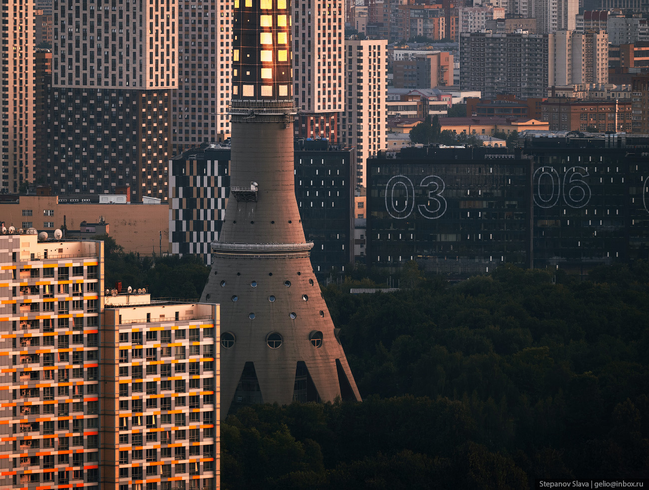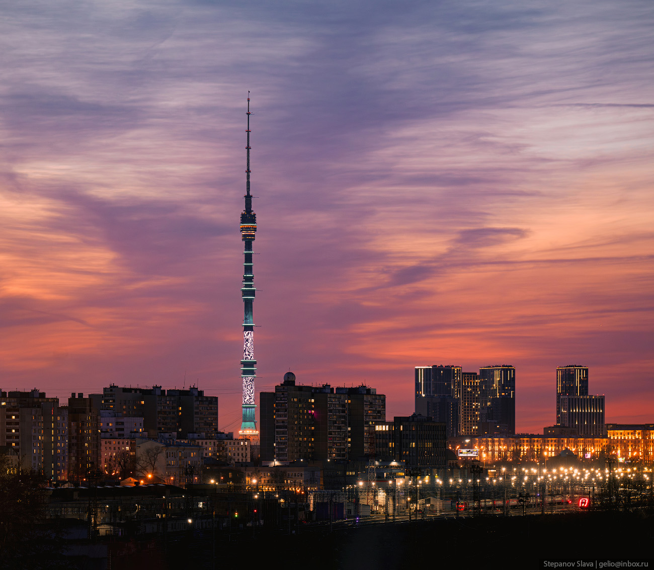 Высота Останкинской телебашни более 540 метров, толщина стен у основания всего 50 см, диаметр основания — 60 метров. Конструкция опирается на 10 опор, за жесткость и устойчивость к ветровым нагрузкам отвечают 145 стальных канатов, натянутых с усилием 70 тонн. На высоте 328-334 метра расположен первый в СССР вращающийся ресторан «Седьмое небо», над ним — закрытая и открытая смотровые площадки, с которых открывается вид на всю Москву.