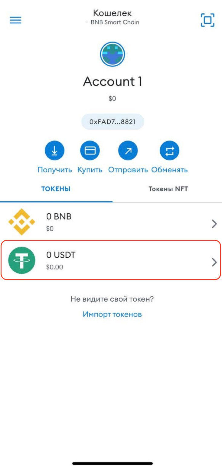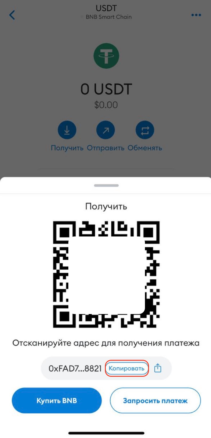 Как найти адрес для пополнения USDT и BNB в сети BNB Smart Chain