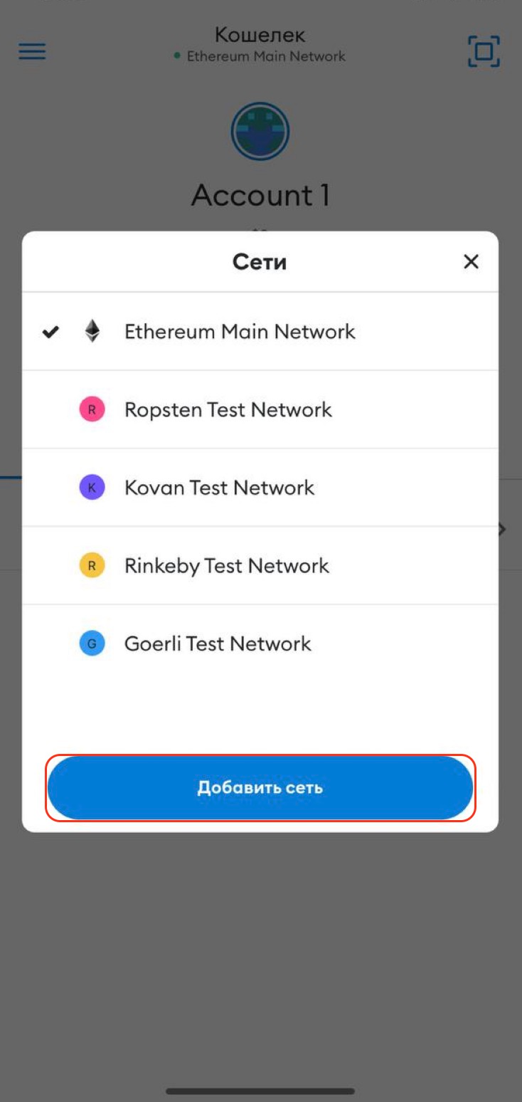 Нажмите кнопку “Добавить сеть”, чтобы добавить новую сеть в кошелек.