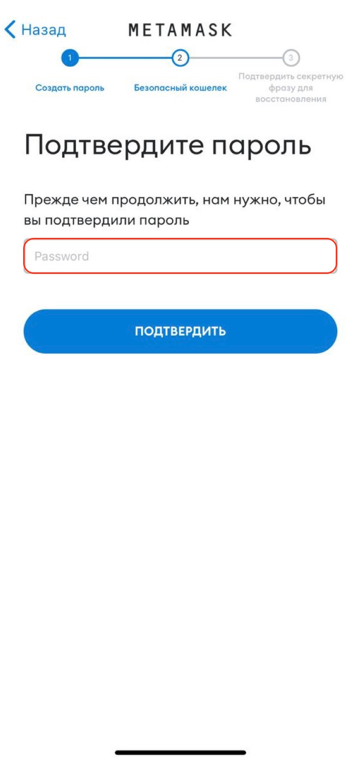 Обязательно сохраните секретную фразу в надежном месте, поскольку без нее доступ к вашему кошельку будет невозможен в случае утери пароля или устройства. Вы всегда сможете восстановить доступ к кошельку на другом устройстве и в другом кошельке по секретной фразе восстановления.