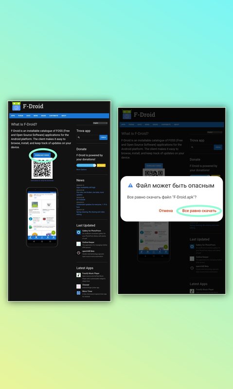 - Маркет приложений F-Droid.