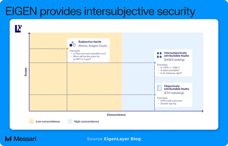 The $EIGEN token introduces a mechanism to handle “intersubjective” failures, which are situations where participants’ behavior cannot be identified on-chain but still requires penalties. Such failures are categorized as: