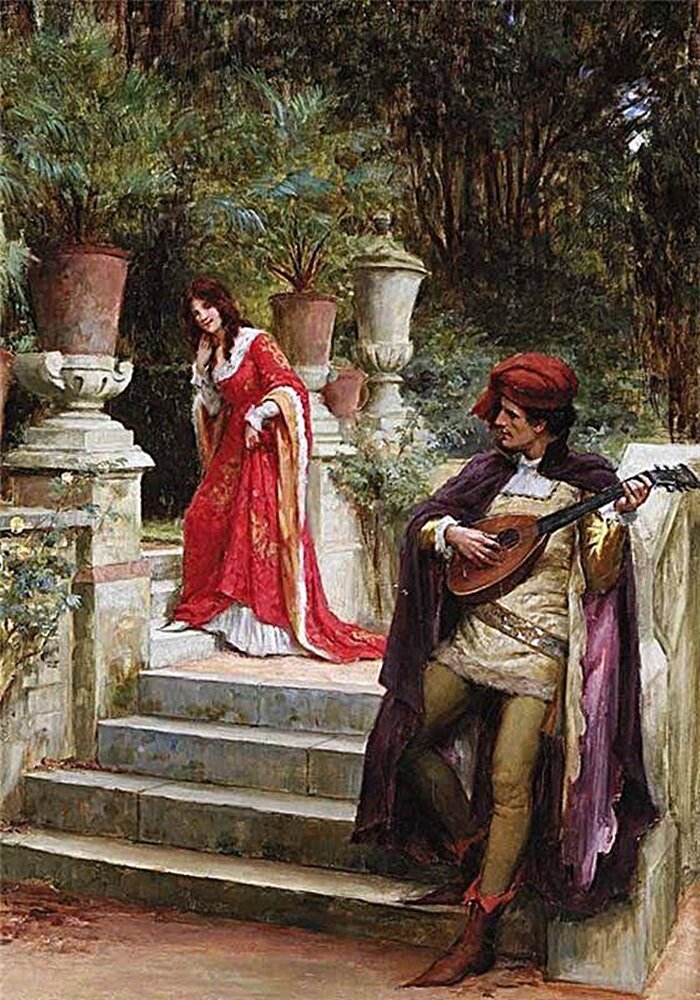 Трубадуры и менестрели песни об изящных чувствах слагали, доводя придворных до сентиментальных слез и исступления. Причем и сами поклонением Прекрасной Даме не брезговали - дрожали от любви, бледнели и лишались сна. Церковь такое дело осуждала, мол, грех это чужую супругу вожделеть, и дрожать можно только в честь Девы Марии. Зато дамы приветствовали, не возражали, да и с чего бы. Выдадут их в несознательном возрасте за какого-нибудь мужлана корягоподобного и что? Терпеть прикажете? Терпели, само собой, но поклонникам выражать себя позволяли. Кому ж не будет приятно, когда про тебя то песнь сочинят, то глазом на турнире пожертвуют. И при этом, обходительно. Красота! Хотя, случались жертвы и посерьезнее.