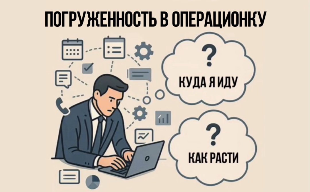 2. Погруженность в операционку. Собственник настолько занят текущими задачами, что ему некогда думать о стратегическом развитии бизнеса. Возникают вопросы: «Куда я иду?» и «Как масштабироваться?».