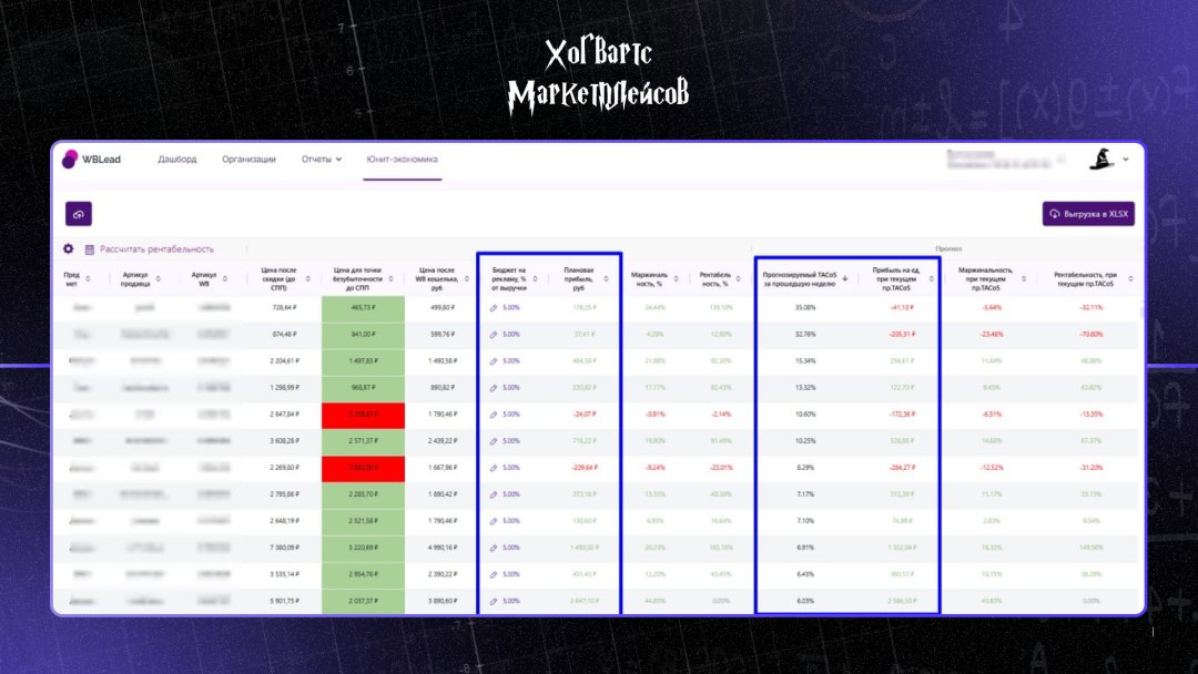 Используйте Excel или сервисы с автоподтяжкой данных, например WBLead: он учитывает цену, СПП, % выкупа, комиссию, логистику (с привязкой к коэффициенту склада, сама логистика пересчитывается относительно каждой продажи в зависимости от % выкупа, габариты, учитывает ваш средний процент выкупа (можно вставить ссылку на сервис). А так же - покажет на каждый товар цену безубыточности и текущую прибыль с учётом фактических затрат на рекламу.