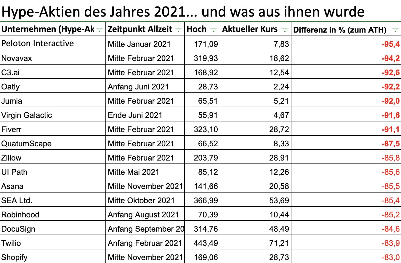 Немецкие обозреватели Welt вспоминают о счастливчиках фондового рынка времён Локдаунов: Gimpel с 2021 года (времени пика) упал на 79%, 7 других обрушились > 90% вниз: Peloton Interactive, Novavax, Oatly, Jumia, Virgin Galactic, Fiverr. Не так всё плохо с ценой Биткоина.