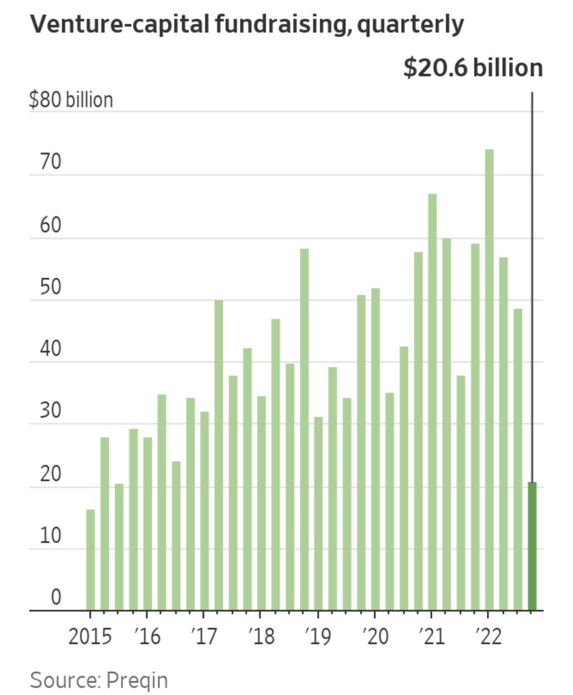 Сокращение почти бесплатных денег (не для тебя, дорогой читатель) в мировой экономике привело к минимумам показателей венчурного инвестирования, поквартально с 2015 года.