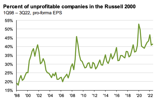 Процент компаний в индексе 2000 которые не приносят дохода.