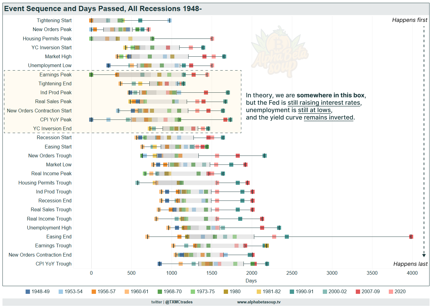 Большая и сложная инфографика: сколько длились какие события во время рецессий с 1948 года.