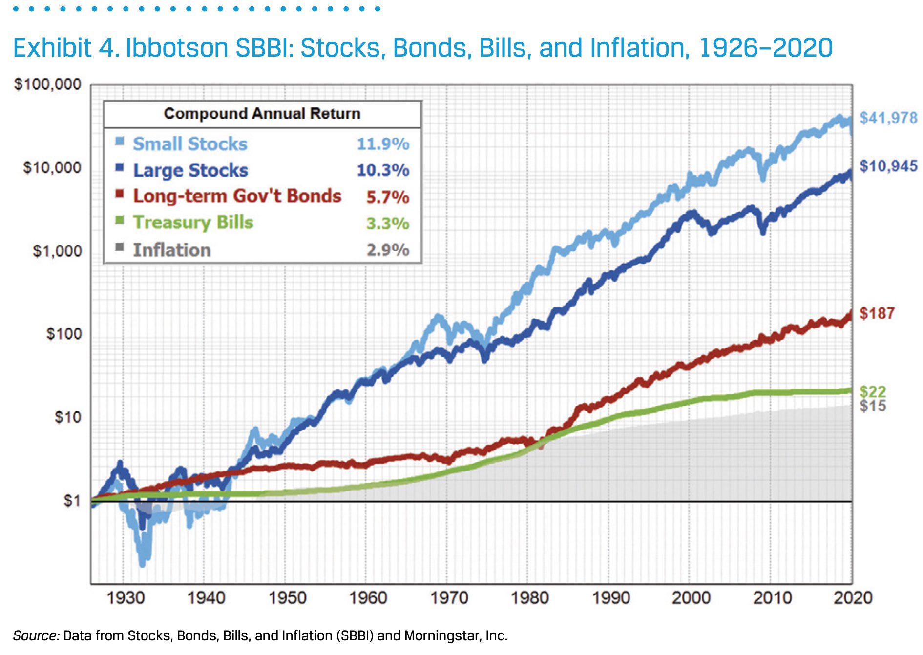 История доходности различных активов обращает внимание на бонды: они стали приносить больше денег, начиная с 1970-ых, т.е. демонтажа Бреттон-Вудской системы. Вкладчики в фондовый рынок всё равно остались в большем выигрыше.