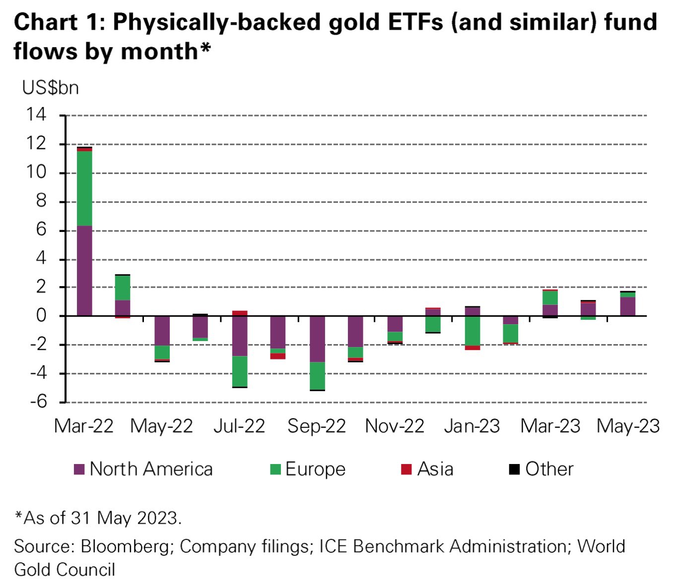 В то время как биржевые биткоин-продукты показали отток капитала 7-неделю подряд, золотые ETF остались в плюсе за примерно тот же период.